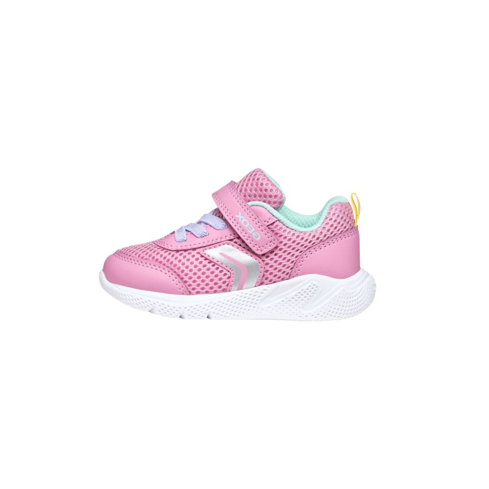 Sneaker baby dal dna sportivo, ammortizzata, traspirante e dal design d’ispirazione running. Qui proposta in rosa e color acqua, Sprintye cattura grazie al suo look contemporaneo e grintoso. Leggera, flessibile e ideale per i momenti di gioco e muoversi in libertà, è realizzata in mesh e materiale effetto pelle.