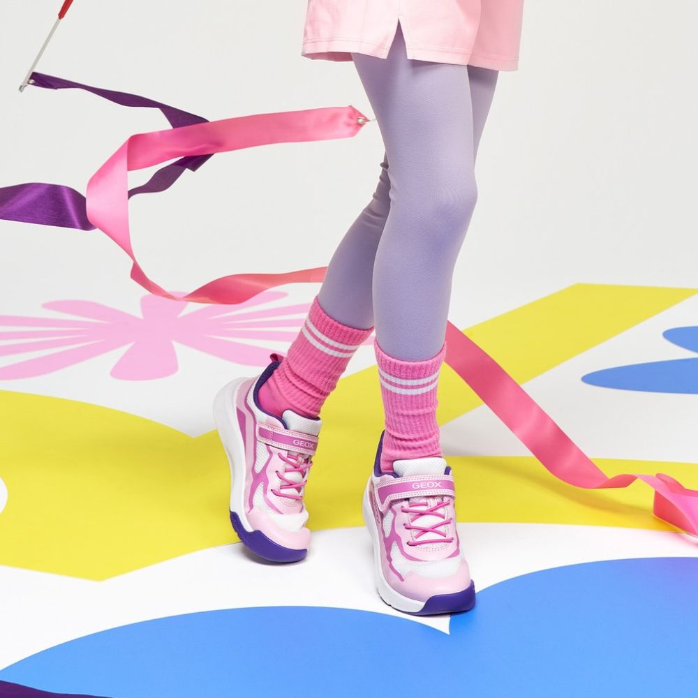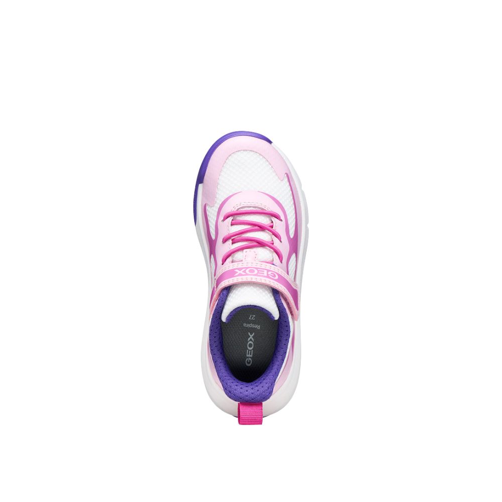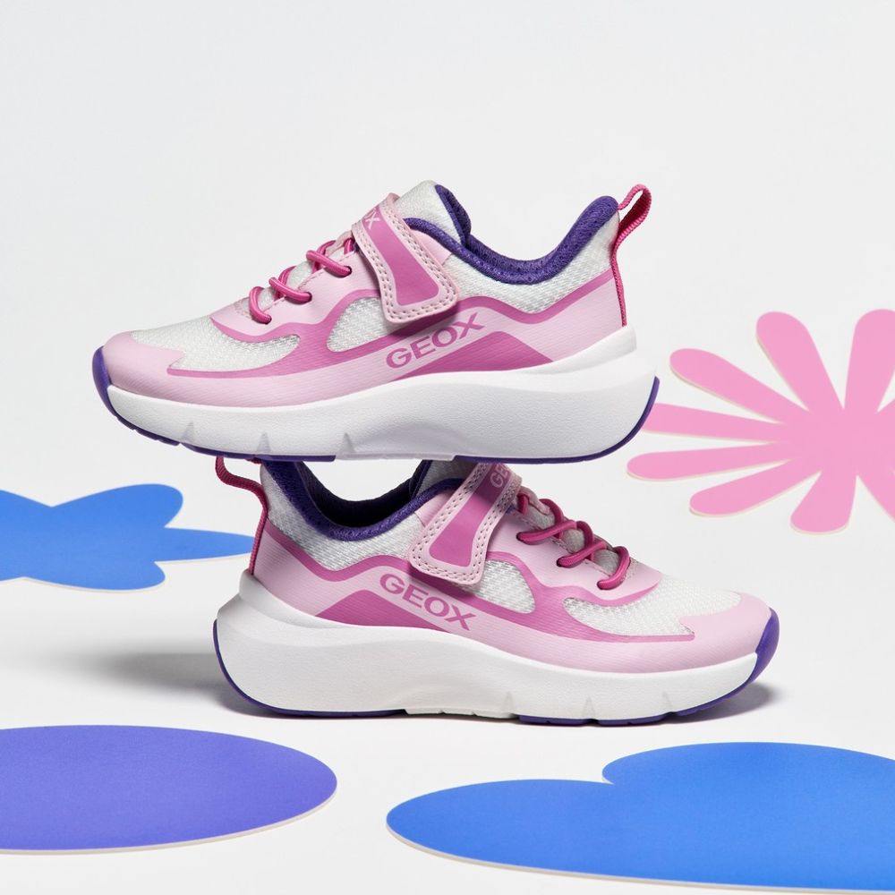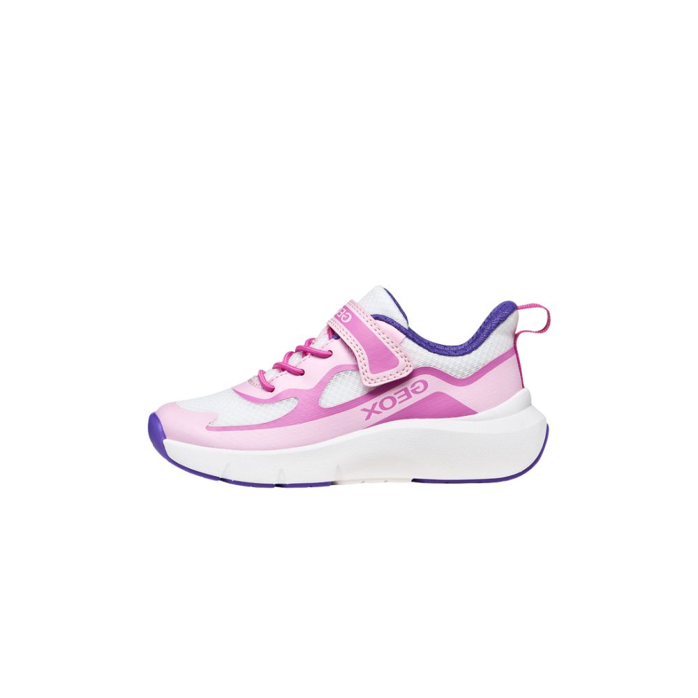 Sneaker junior flessibile e traspirante, progettata per il gioco e accompagnare tutti i loro movimenti. Proposta in rosa e bianco, è realizzata in mesh e materiale effetto pelle. Pro-Ran coniuga stile e protezione ottimale, grazie a un design dinamico e moderno con punta rinforzata antiurto.