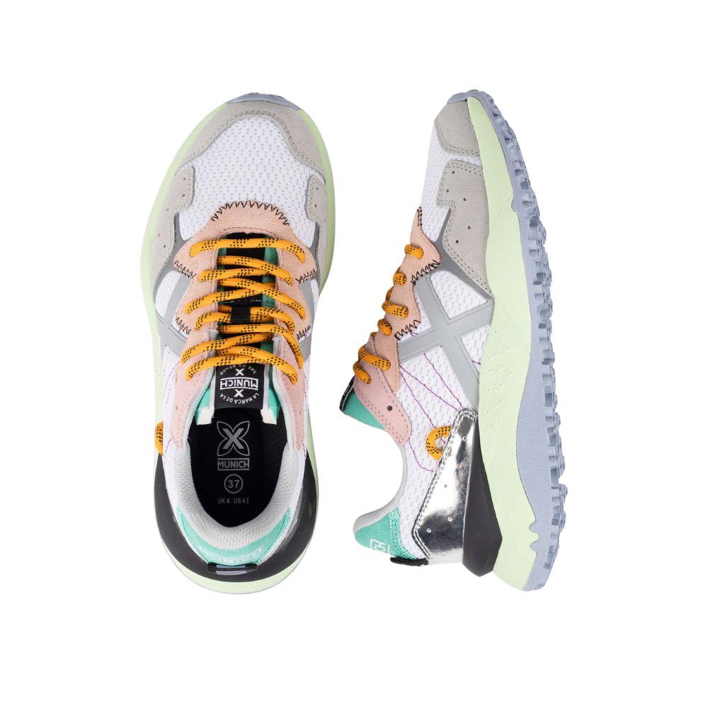 La sneaker più completa per l’ambiente urbano: le SHIBUYA rappresentano tutto ciò di cui si ha bisogno per affrontare la frenesia quotidiana. Questo modello esalta un lato sportivo moderno attraverso una suola chunky a doppia altezza che si adatta comodamente a ogni passo. La tomaia presenta un mix sofisticato di camoscio e poliestere in toni lavanda, rosa cipria e bianco, con un rinforzo metallizzato sul tallone che dona un tocco futuristico. Dotata di tirante posteriore, lacci rotondi bicolore e una suola tecnica in phylon e TPU con rinforzo in gomma per garantire massima resistenza e stile.