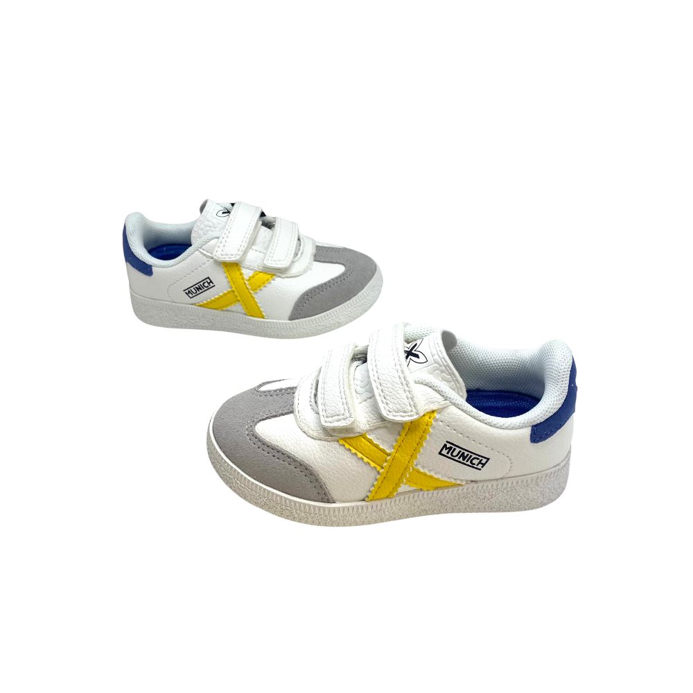 La MINI BARRU recupera lo spirito del leggendario modello Barru di Munich. Realizzate con materiali resistenti e una suola in gomma durevole, queste sneakers sono progettate per seguire il ritmo dei piĂą piccoli. La chiusura a doppio velcro facilita una calzata sicura e veloce, permettendo ai bambini di guadagnare indipendenza nel vestirsi da soli.Sono la calzatura perfetta per la scuola, offrendo comfort per tutto il giorno, e per le attivitĂ ricreative all’aperto o eventi casual dove si cerca uno stile sportivo ma ricercato.