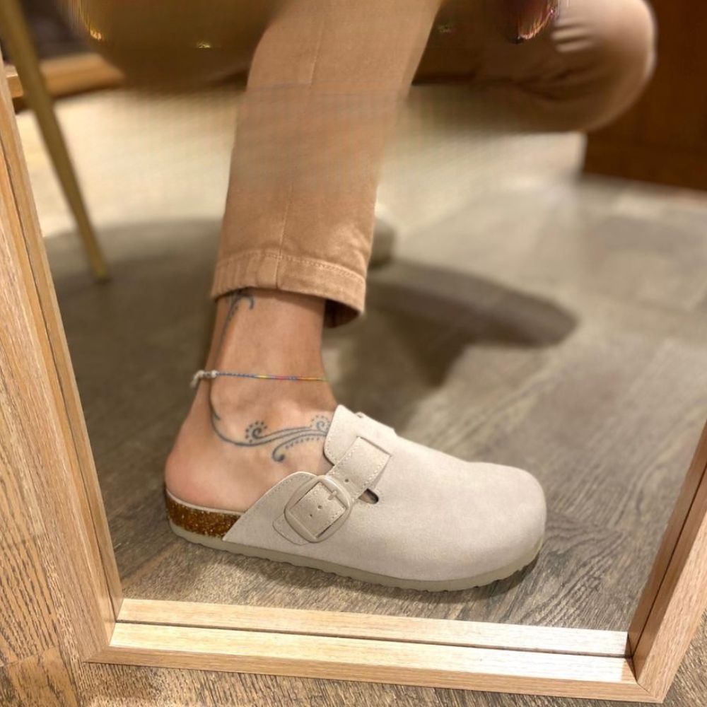 Sabot da donna, marchio Refresh. Realizzati in crosta di pelle. Cinturino con fibbia. Comoda suola tipo bios con fondo in gomma antiscivolo