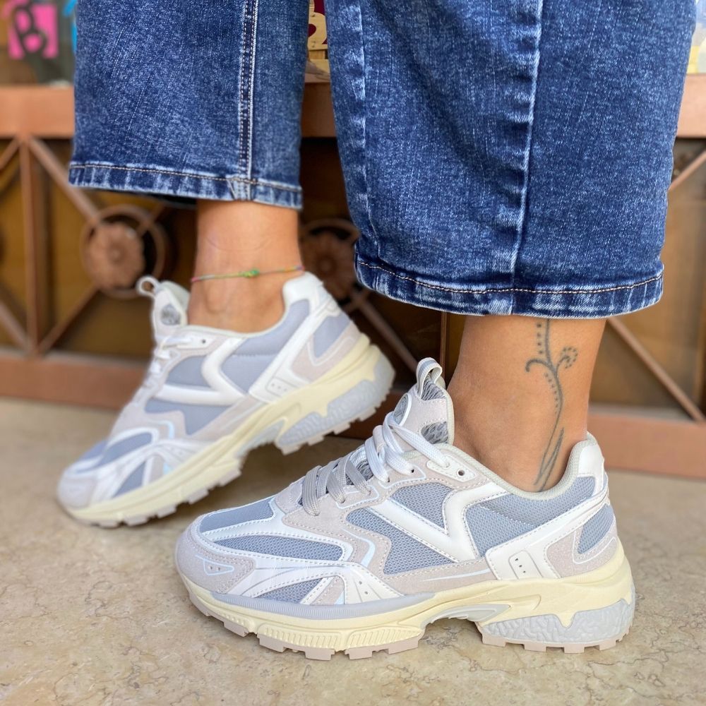 Scarpe sportive da donna realizzate in tessuto a rete con sovrapposizioni in pelle e dettagli in PU. Suola in phylon con battistrada dentellato in gomma e stabilizzatore nel tallone. Include inoltre una soletta ergonomica che si adatta alla forma del piede, offrendo una sensazione di comfort.